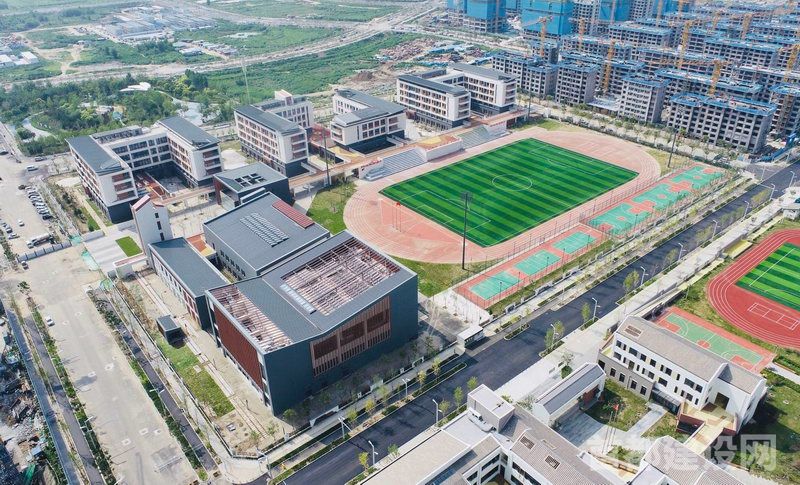 该工程总建筑面积约4.2万平方米,是“三校”项目中体量最大的学校,由综合楼、初中部、实验楼、高中部、连廊5栋单体组成,旨在打造一座具有国际视野和水准的现代化校园的同时,展现出民族传统和地域文化特色。