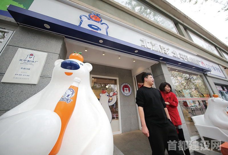 北平制冰厂里有憨萌可爱的冰冰熊和多种新式饮品,还有文创雪糕、老式点心和瓷罐酸奶等。店内随处可见北冰洋的冰冰熊及熊友家族,带有大白熊元素的咖啡杯、帽子、手机壳等相关的文创产品供消费者挑选。