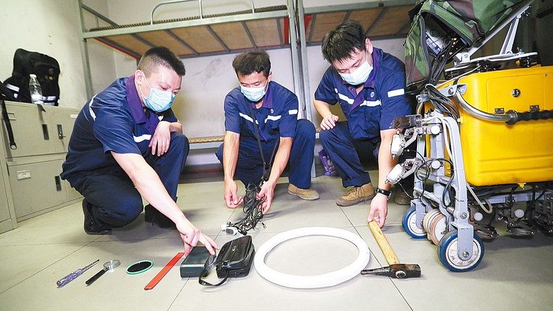 检查各种设备 ■记者 周宇杰/摄