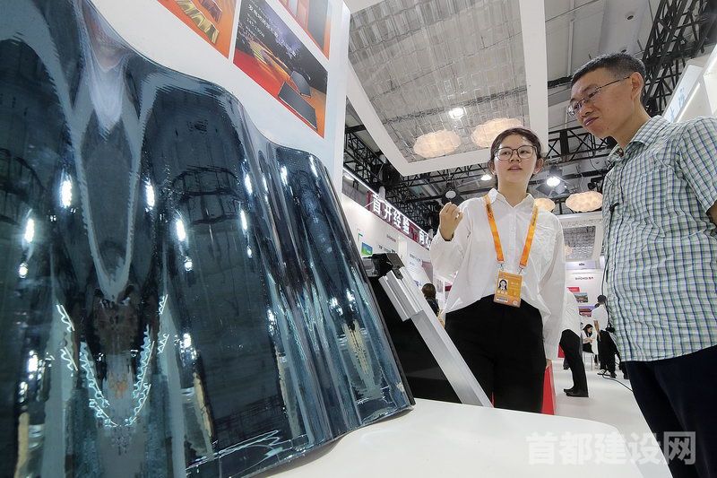 首开集团展示的各种类型光伏板,既美观又能低碳减排。