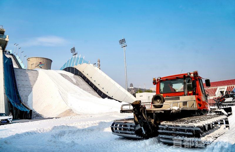 首钢园运动中心场地服务保障工作人员刘永亮介绍,首钢园运动中心场地服务保障工作人员从今年7月便开始对滑雪大跳台赛道、区域地面、排水系统、看台、墙面、功能用房、压雪车辆等进行完善和维护。“我们结合现场情况将滑雪大跳台结束区地面全部更换成更加耐久的彩色防冻沥青路面,同时还对排水沟系统进行了改造,并对部分损坏的座椅进行更换,安装了固雪网、赛事安全防护网等设施,确保造雪作业顺利进行。”刘永亮说。