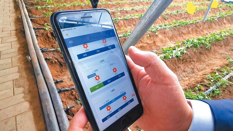 用手机远程操作大棚的上下通风口以及棉被层开关 ■记者 周宇杰/摄