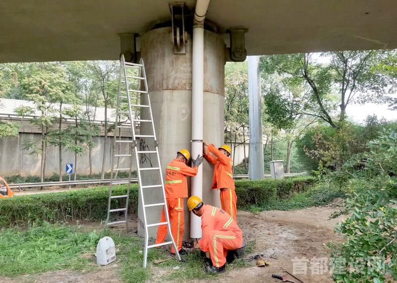 工作人员正对立交桥排水系统进行防汛前养护维修 ■记者 刘偶/摄