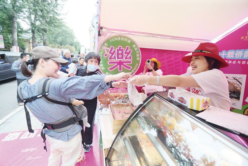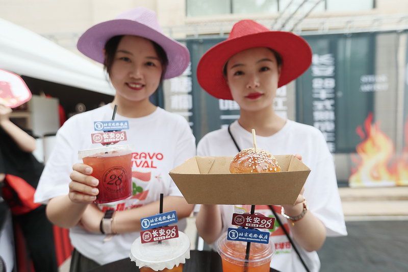北京国际饭店的双层牛肉大汉堡、新侨饭店的炸虾排、东来顺的羊肉串和奶油炸糕、东方饭店的炒肝儿、民族饭店的团圆龙粽和提拉米苏、全聚德的烤鸭披萨……不少优质产品亮相。在coffee g咖啡馆门口,“北平红果”等3款生活节限定特调饮品海报分外显眼,北展coffee g和东来顺推出的“北平红果”成为生活节上的人气饮品,很多顾客特意坐在户外座位品尝。同时,西苑饭店的非遗漆扇和水拓文化体验也吸引了不少顾客体验。
