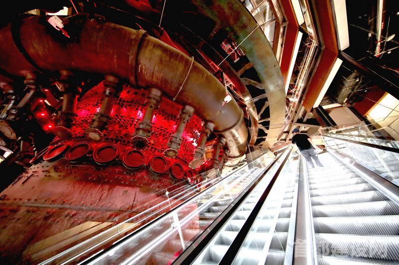 在四高炉二层,顶部有些锈蚀的罩棚被全部保留,在罩棚边缘增加的射灯提高了整体建筑的亮度,使空间显得更通透。于华介绍,项目团队将原有楼板做了调整处理,并通过扶梯组合与顶部射灯的布置,让观众的视觉汇聚点得到不断延伸。