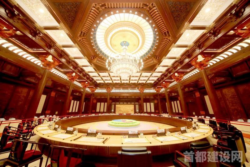 走进雁栖湖国际会议中心,集贤厅呈现出古朴、典雅的风格。这里曾见证了24位apec经济体领导人的深入交流,也留下了“一带一路”国际合作高峰论坛等重要历史时刻的印记。作为领导人圆桌峰会会场,集贤厅内,无论是穹顶之上的艺术藻井,还是斗拱采用的景泰蓝工艺,抑或屏风《锦绣中华》中雕刻的绵延长城,每一处细节都蕴藏着浓浓的中国和北京传统文化的印记,展现出唐宋气象,明清雅致。