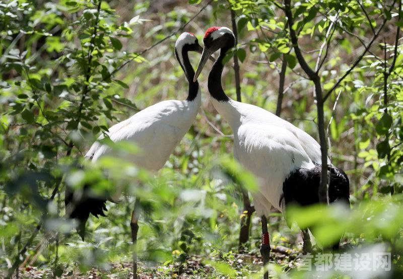 一对丹顶鹤在位于金丝猴馆南侧的新建湿地里栖息 ■记者 周宇杰/摄