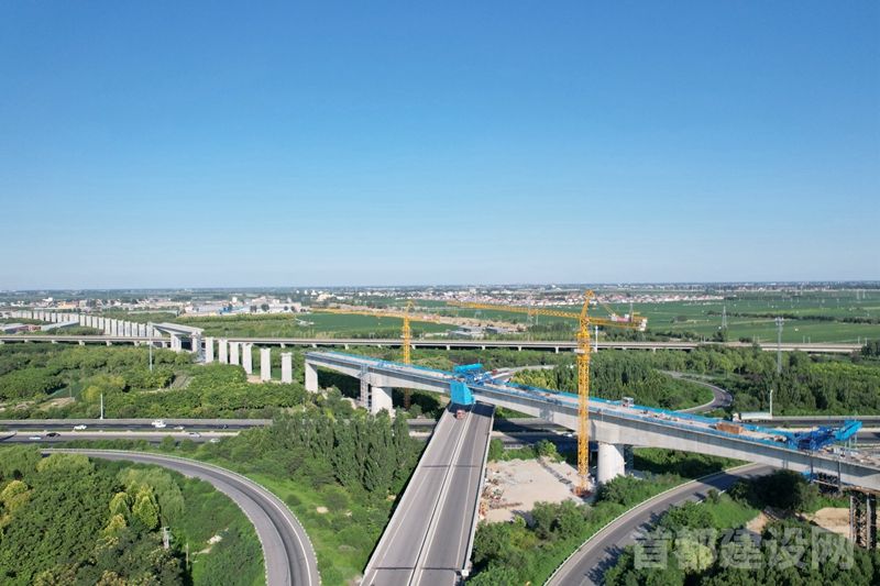 雄忻高铁保定东特大桥跨京港澳高速连续梁中跨顺利合龙 ■企业/供图