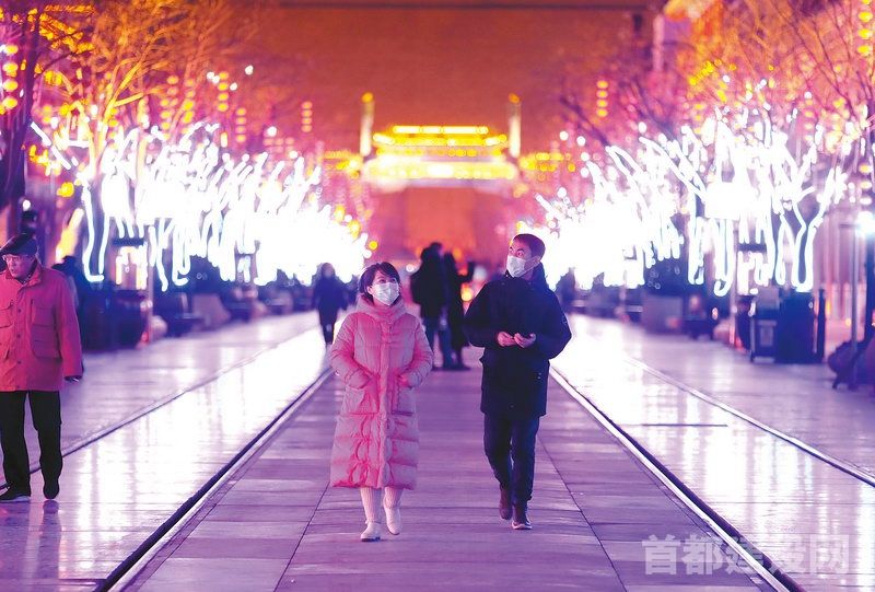 绚丽的景观灯照亮了整条前门大街,也让街头的节庆气氛更加浓郁 ■记者 董一鸣/摄