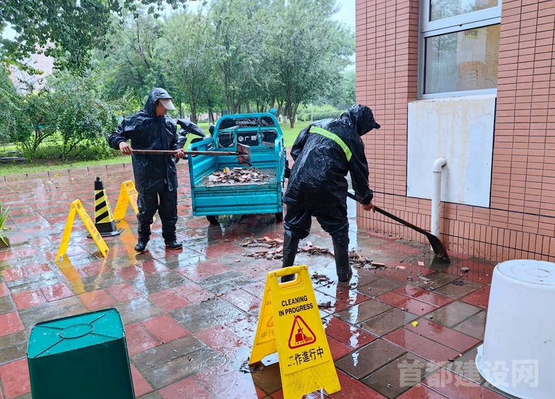面对持续强降雨,京城佳业北宇物业百余项目的应急力量火速集结,以周密部署筑牢防汛安全堤坝。面对暴雨的严峻考验,朝阳门、交道口、新街口等胡同项目部无畏风雨,化身“逆行者”。项目人员深知,胡同平房区是防汛的神经末梢,关系着千家万户最切身的安危。在大雨倾盆、积水骤起的危急关头,项目人员迅速出击,清扫道路积水40余处,奋力清理淤堵雨箅子80余个,争分夺秒保障“水路”畅通,力阻内涝形成。他们攀上湿滑的屋顶,紧急抢修并苫盖漏雨房屋30余处,为居民撑起“屋顶上的安全”;他们火速响应,精准处置因漏雨引发的电路故障5起,及时消除次生灾害隐患。在安贞医院通